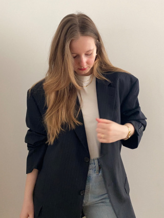 Ta klasyczna szara marynarka będzie idealna na chłodniejsze wieczory i zimniejsze pory roku. Dodaj do niej białą koszulę i eleganckiego spodnie dla bardzie oficjalnej stylizacji, a na co dzień zarzuć na jeansy czy ulubioną spódnicę. Ps. Świetnie też będzie wyglądać spięta paskiem w talii.